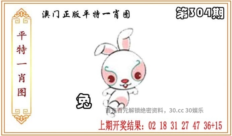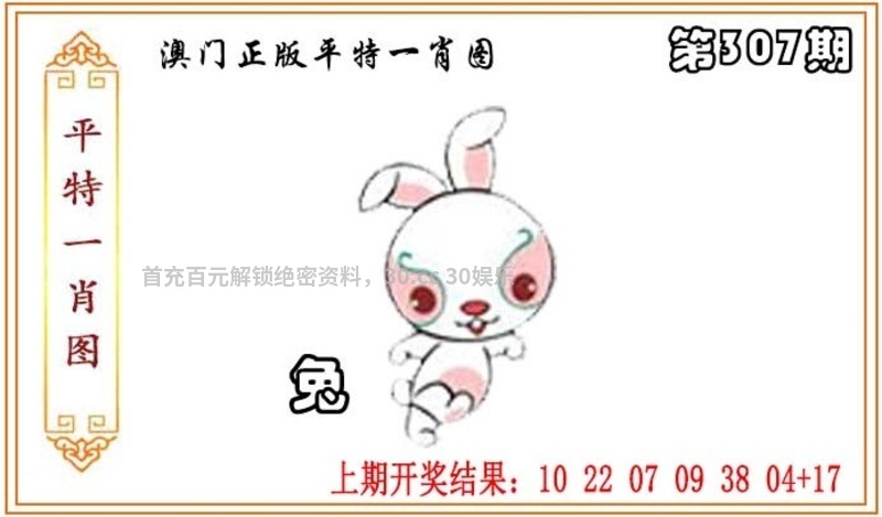 | 第307期:解平特一肖图 平特一肖:兔兔兔 平特一尾:888 复式连肖:兔羊鼠马 |